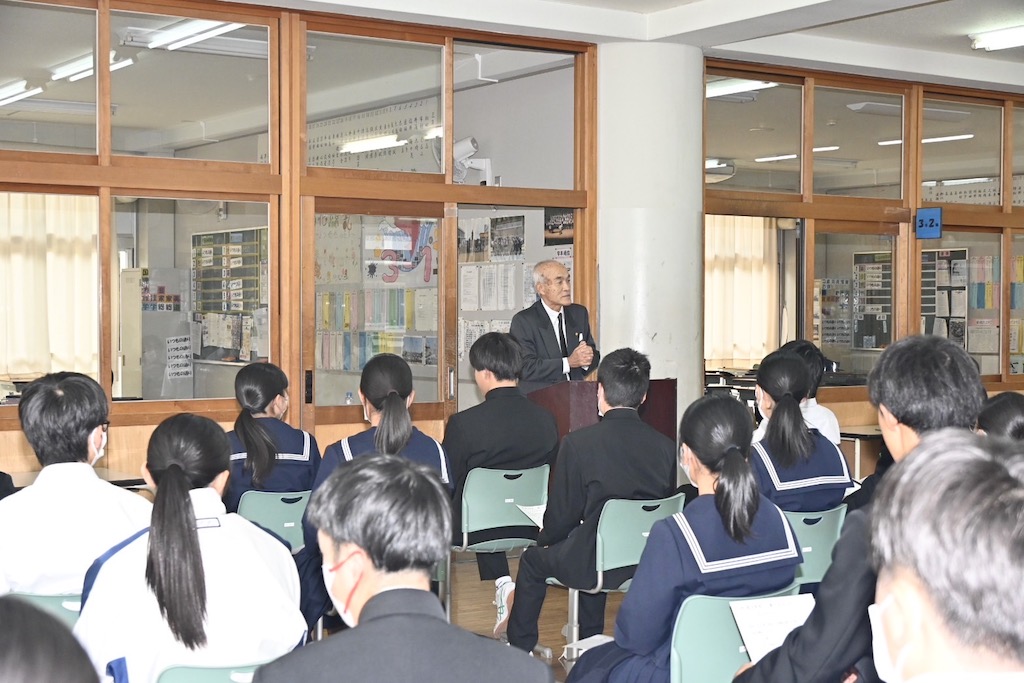 2024年11月18日、保護司として東浦中学校で、春に卒業を控えて次のステージに立つ3年生約70人に、講話を行いました。